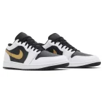 Jordan 1 Low White Black Metallic Gold Swoosh