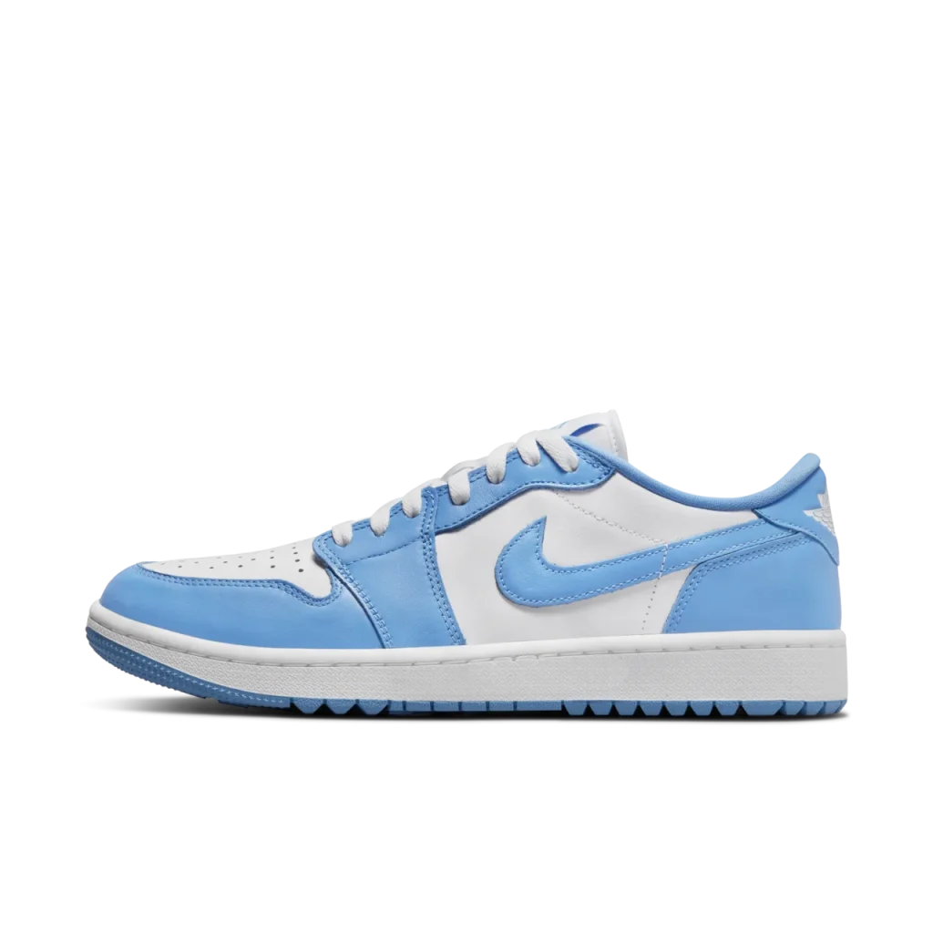 Nike Air Jordan 1 Retro Low Golf UNC, Jordan Brand’in ikonik Air Jordan 1 modelini golf sahasına taşıyan şık ve fonksiyonel bir tasarımdır. UNC (University of North Carolina) renkleriyle tasarlanan bu model, üniversitenin renk paletinden ilham alarak, klasik mavi ve beyaz tonlarını bir araya getirir. Hem performans hem de tarz odaklı bu özel tasarım, golfçüler için hem şık hem de rahat bir seçenek sunar.