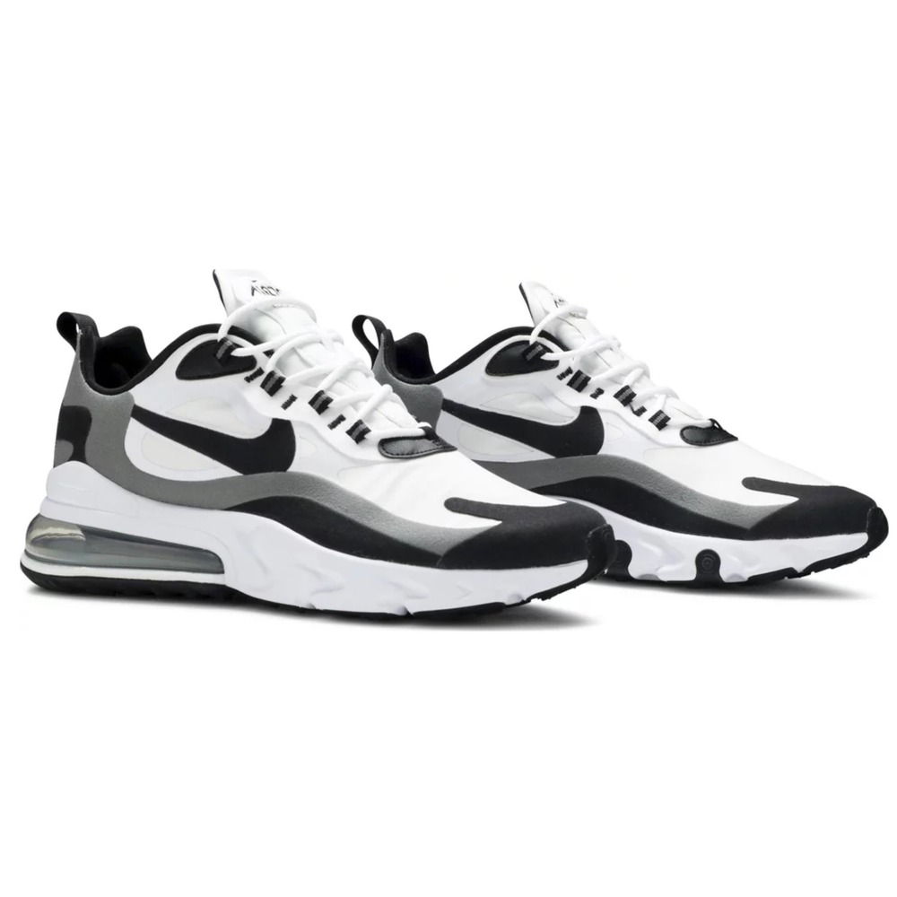 Nike Air Max 270 React White Black Metallic PewterMarka:NikeSKU:CT1264-101Renk:Beyaz / Siyah / Metalik PewterMateryal:Sentetik